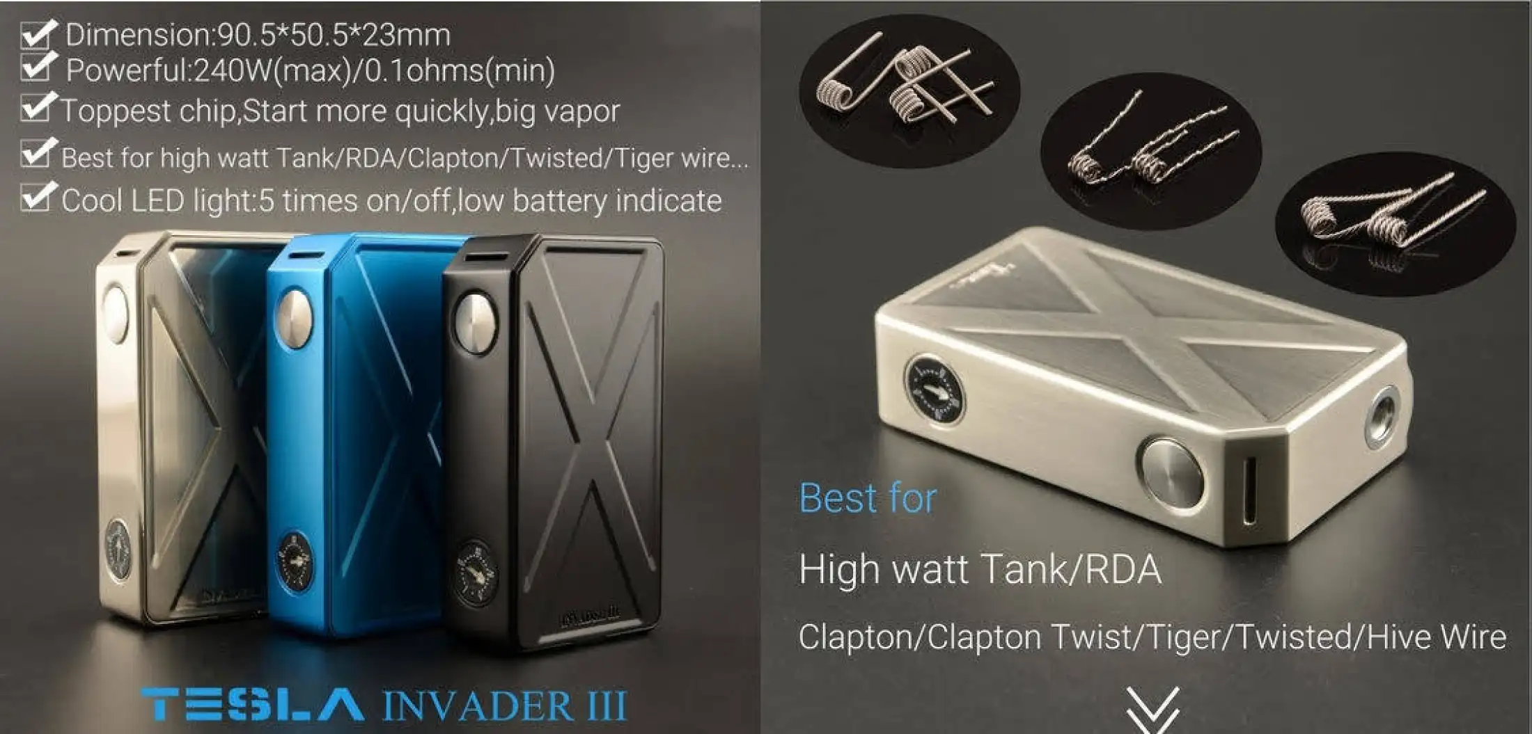 Warna box mod Tesla ada 3 varian yakni SS Black dan Blue. Beberapa Bentuk Tipe Coil Vaping Microcoil. This particular impression Tesla Invader 3 Clone Luxury บหรไฟฟา เทสลา 3 Tesla Invader Iii Box Mod ข preceding can be labelled along with.